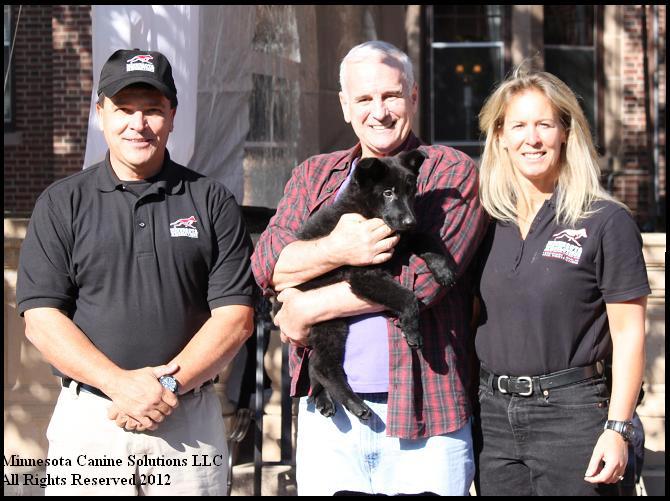 Minnesota Governor Mark Dayton receiving his Minnesota K-9 German Shepherd Puppy "Itasca".