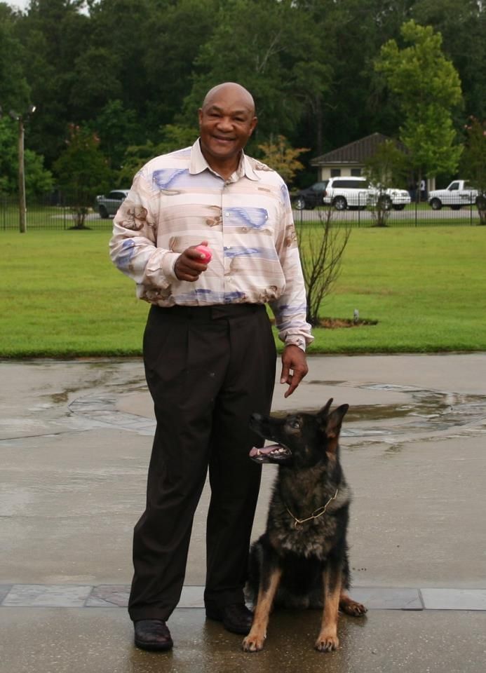 World Heavy Weight Champ George Foreman and his German Shepherd K-9 "Daggo".