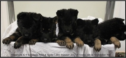 We specialize in Solid Black German Shepherd Dogs as well as Black and Red Bi-Color K-9's.